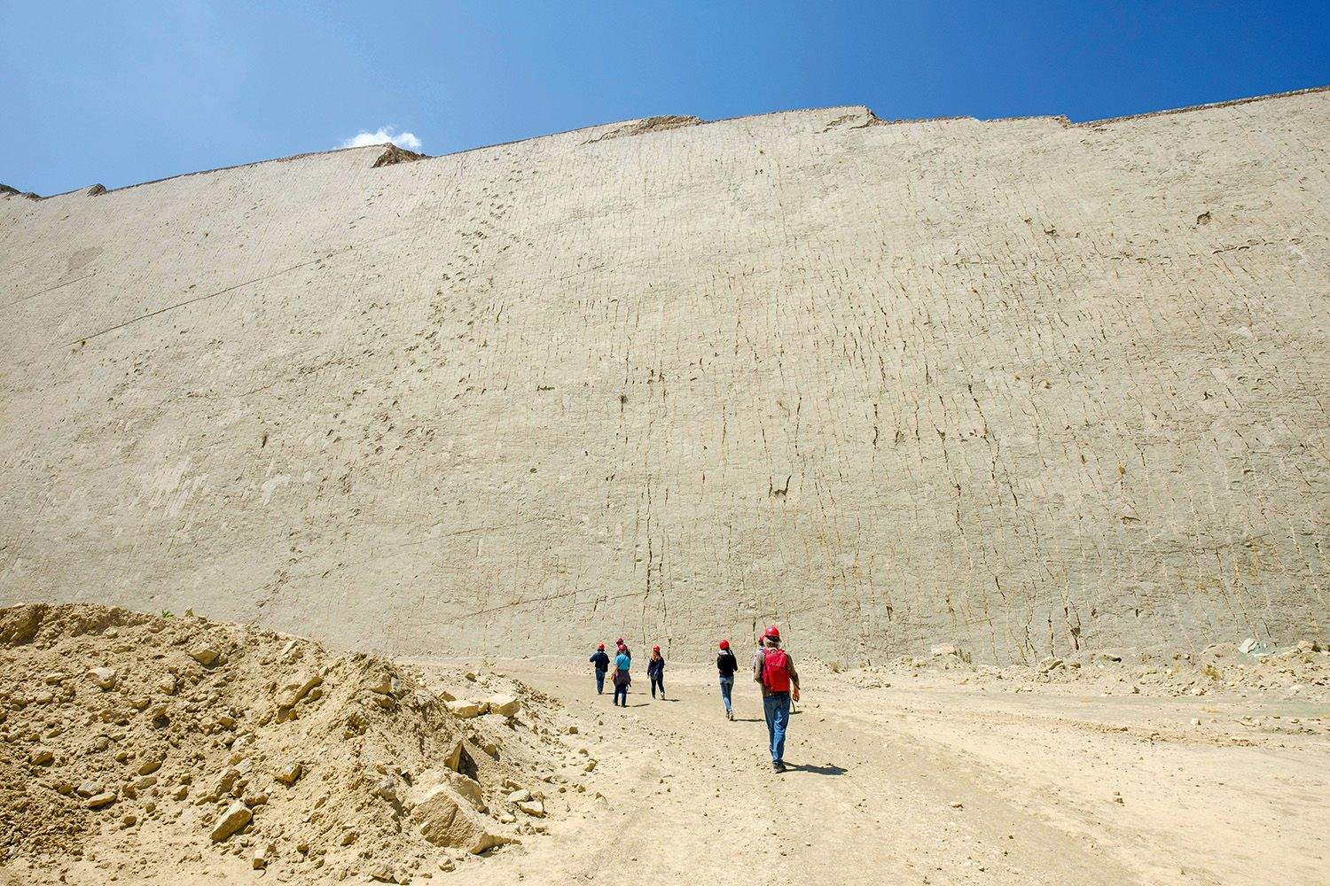 This otherwise unedifying wall is actually filled with dinosaur footprints (Alamy)
