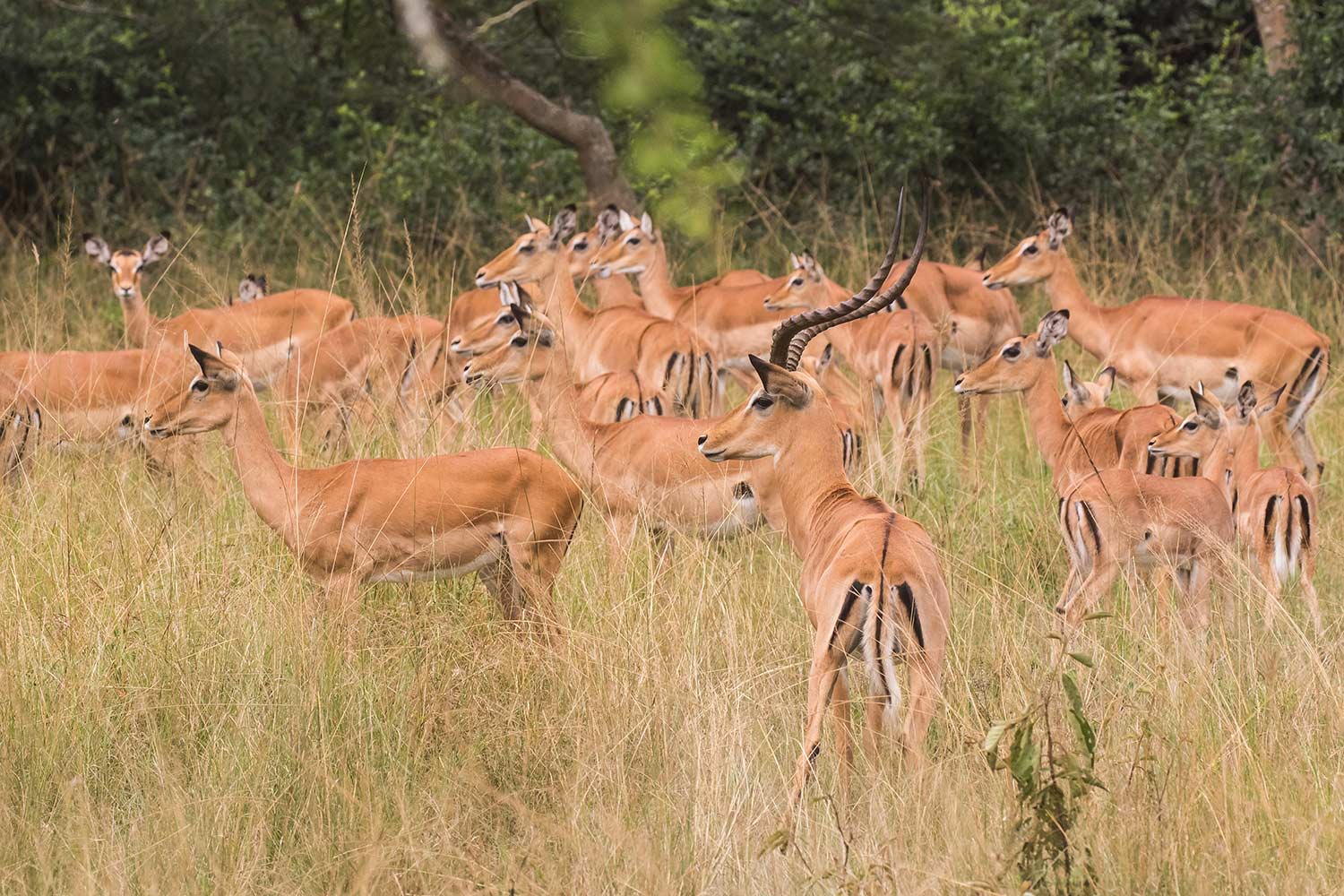 If you’re keen to see herds of kobs, the antelope that, together with the crowned crane, appears on Uganda’s coat of arms, a visit to QENP is a must. Lying on the Equator, with the jagged Rwenzori Mountains as a backdrop, it’s Uganda’s most popular park, and supremely diverse. Of the 90-plus mammal species and 600-plus bird species found in its varied habitats, highlights include elephants, buffaloes and lions, some of which have the endearing habit of climbing sturdy fig trees. This region is rich in cultural traditions , too, with the communities surrounding the park sharing aspects of their heritage through storytelling, music and crafts.