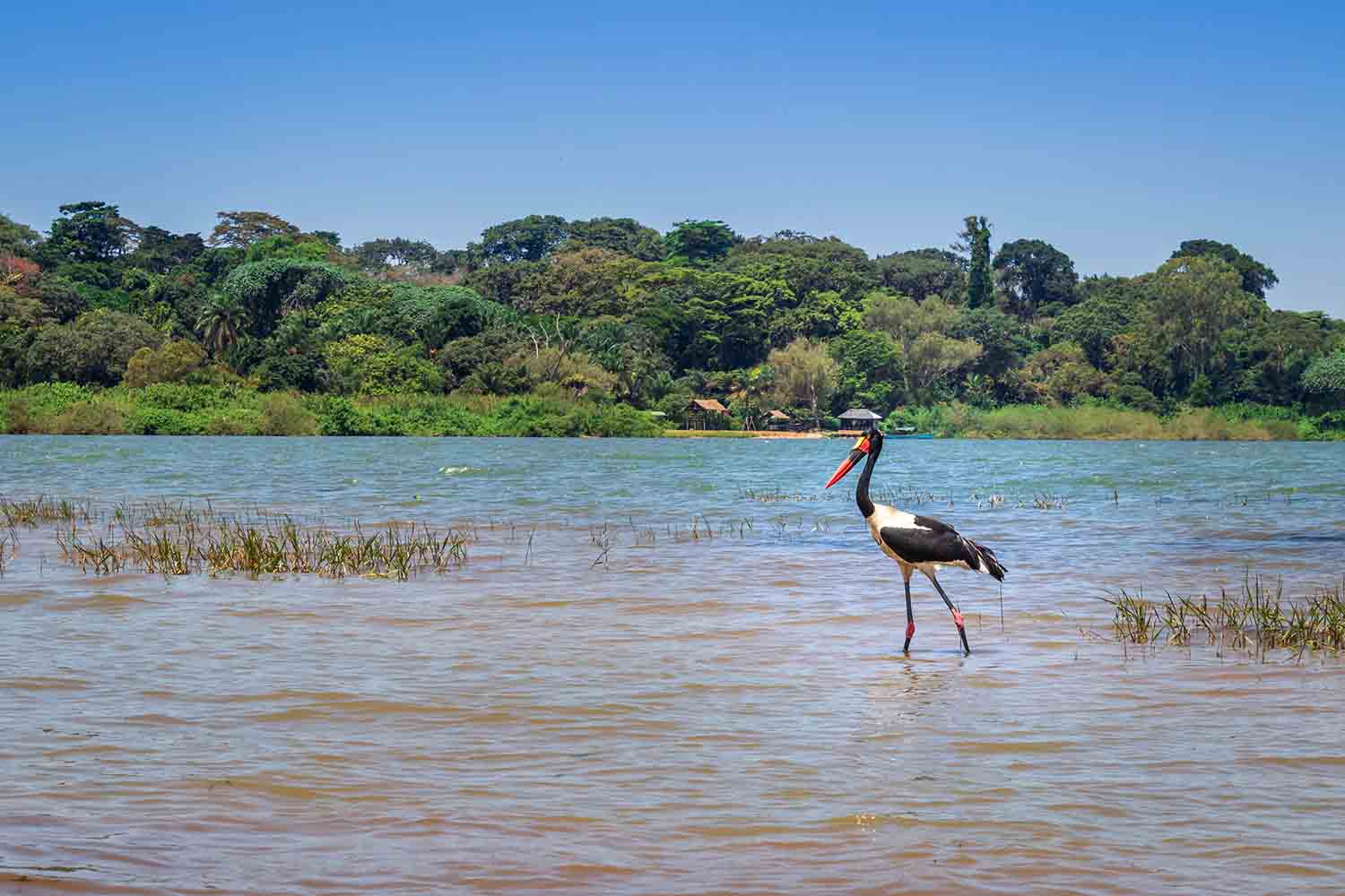 Widespread in sub-Saharan Africa but particularly strongly associated with East Africa, the saddle-billed stork is an elegant black-and-white bird with snazzy red and yellow colour-blocks. They prey on fish, frogs and crabs. Conveniently, they prefer not to stray too far from their favourite feeding grounds, so are easy to find.