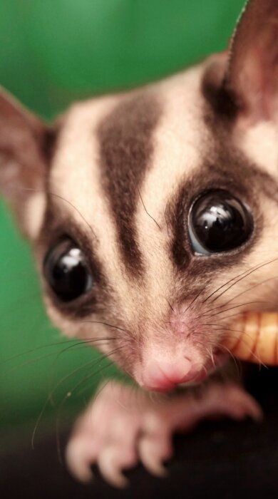 Description: Small and fluffy, with enormous brown eyes, the sugar glider also have a membrane from their wrists to their ankles that allows them to fly. Like a furry bedsheet but more effective.