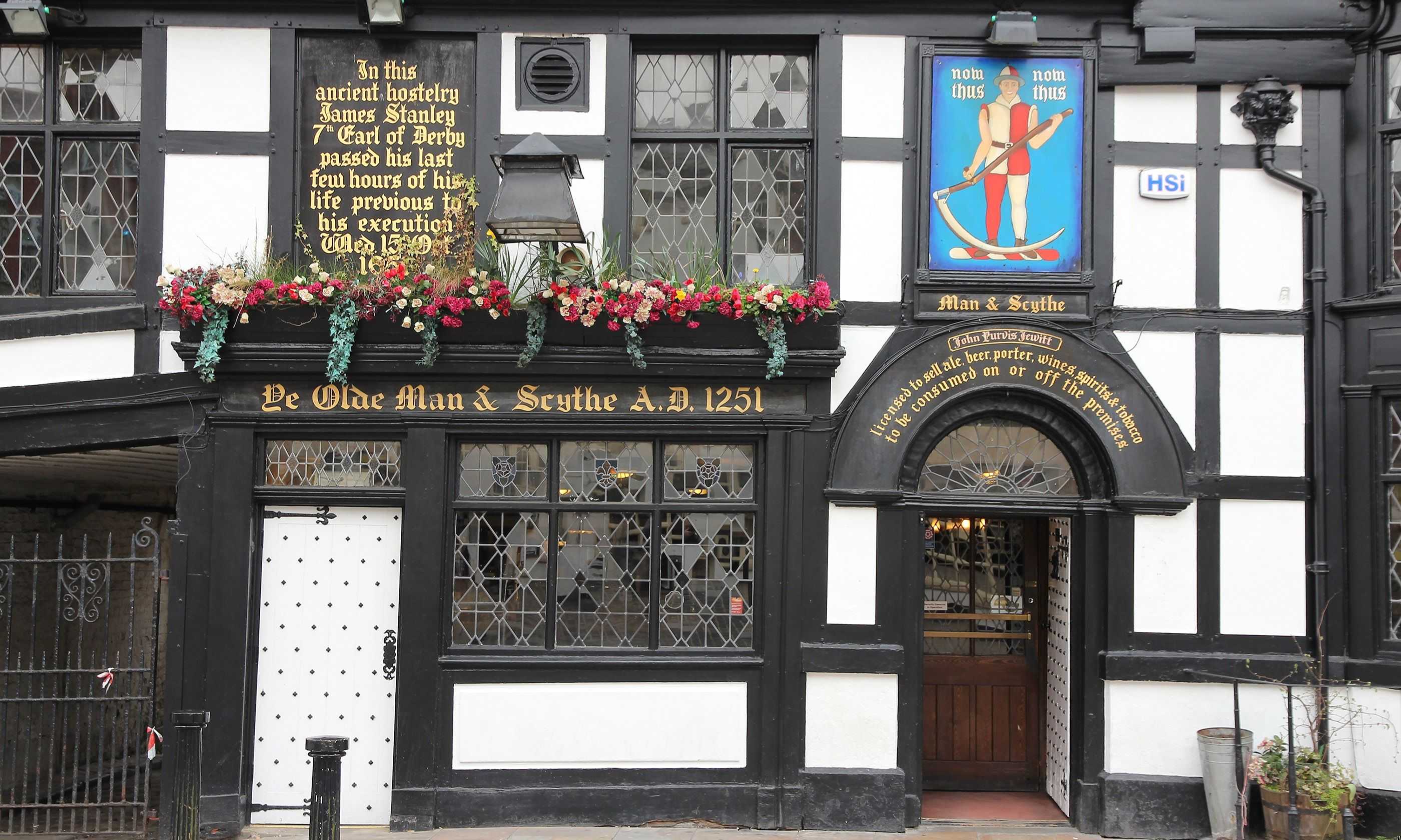 Another English pub steeped in history. James Stanley, the seventh Earl of Derby, was executed just outside the door in 1651 for his role in a Civil War massacre. The pub was already 400 years old by that stage.