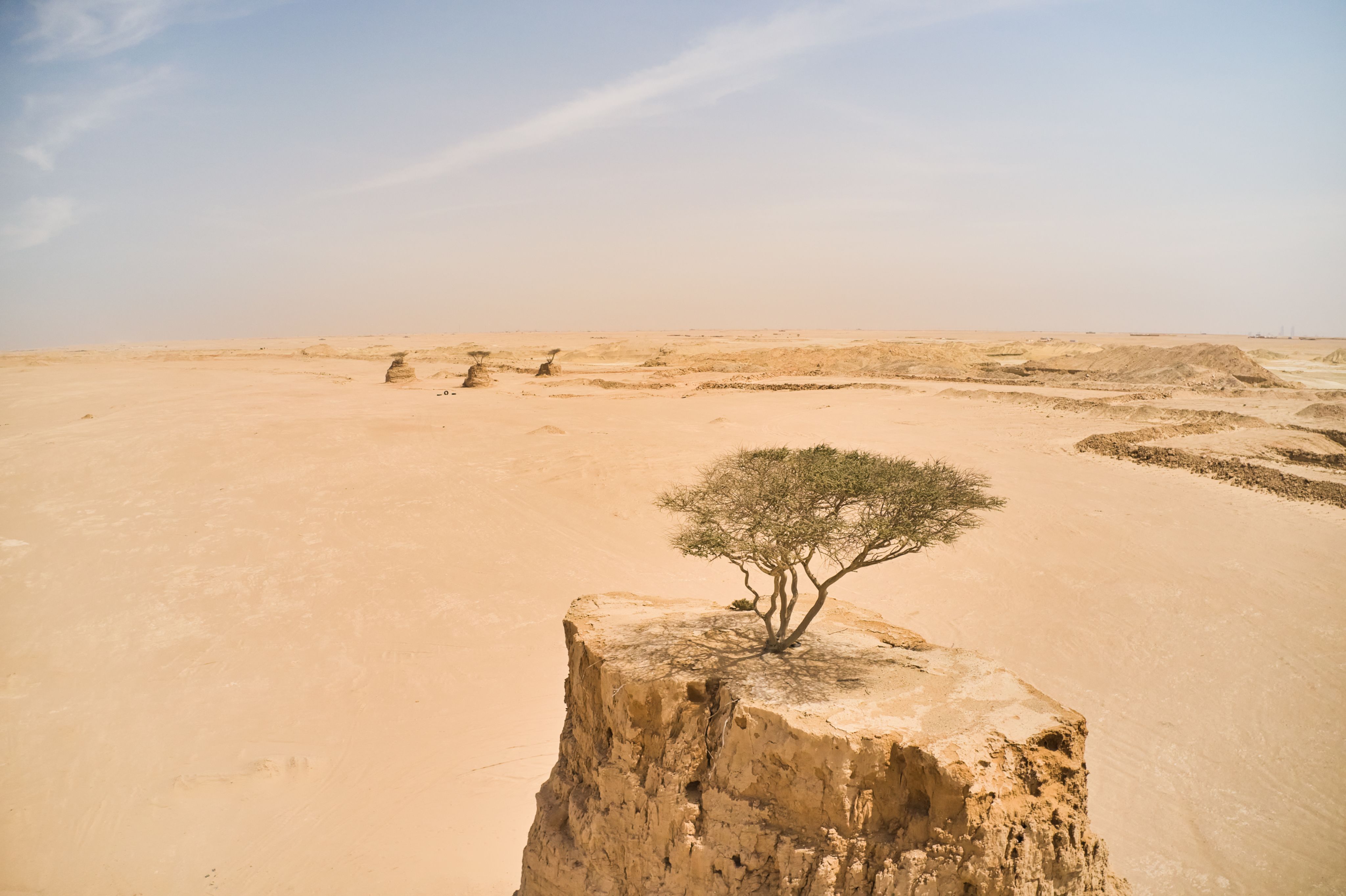 Excavated in the early 1960s, the Umm Bab clay quarry stands out in Qatar’s otherwise flat landscape. The area, with its carved ridges and canals, resembles a miniature canyon and creates a stark contrast to the surrounding terrain. Its most significant features are the clay towers capped with a singular tree; it is believed that the workers who excavated the clay had worked around the existing fauna, creating the clay towers as a result. The site offers a glimpse into Qatar’s industrial past whilst serving as a fascinating attraction for visitors. There is also a beach nearby with clusters of naturally occurring palm trees.