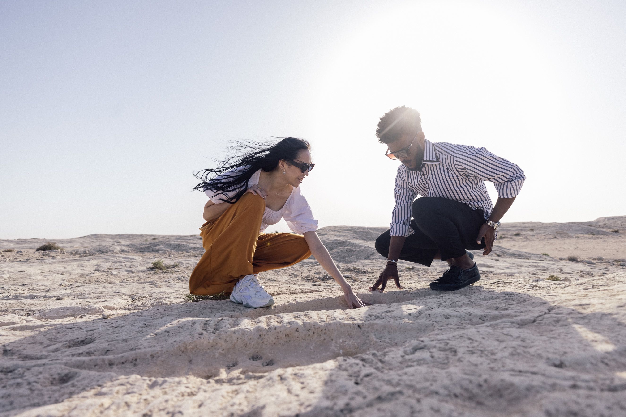 Hidden away in an abandoned limestone quarry, the petroglyphs at Al Jassasiya offer an exciting glimpse into Qatar’s mysterious past. Believed to date back to the Neolithic period, or perhaps as recently as 250 years ago, these 874 rock carvings are easy to miss unless you know where to look. Upon closer inspection, you’ll find intricate symbols, including dhow boats with their slender oars, fish, ostriches (yes, really), and circular cup marks thought to represent a traditional game like mancala, a map of constellations, or even tools used to measure pearls. To this day, no one has solved the meanings behind the Al Jassasiya petroglyphs.