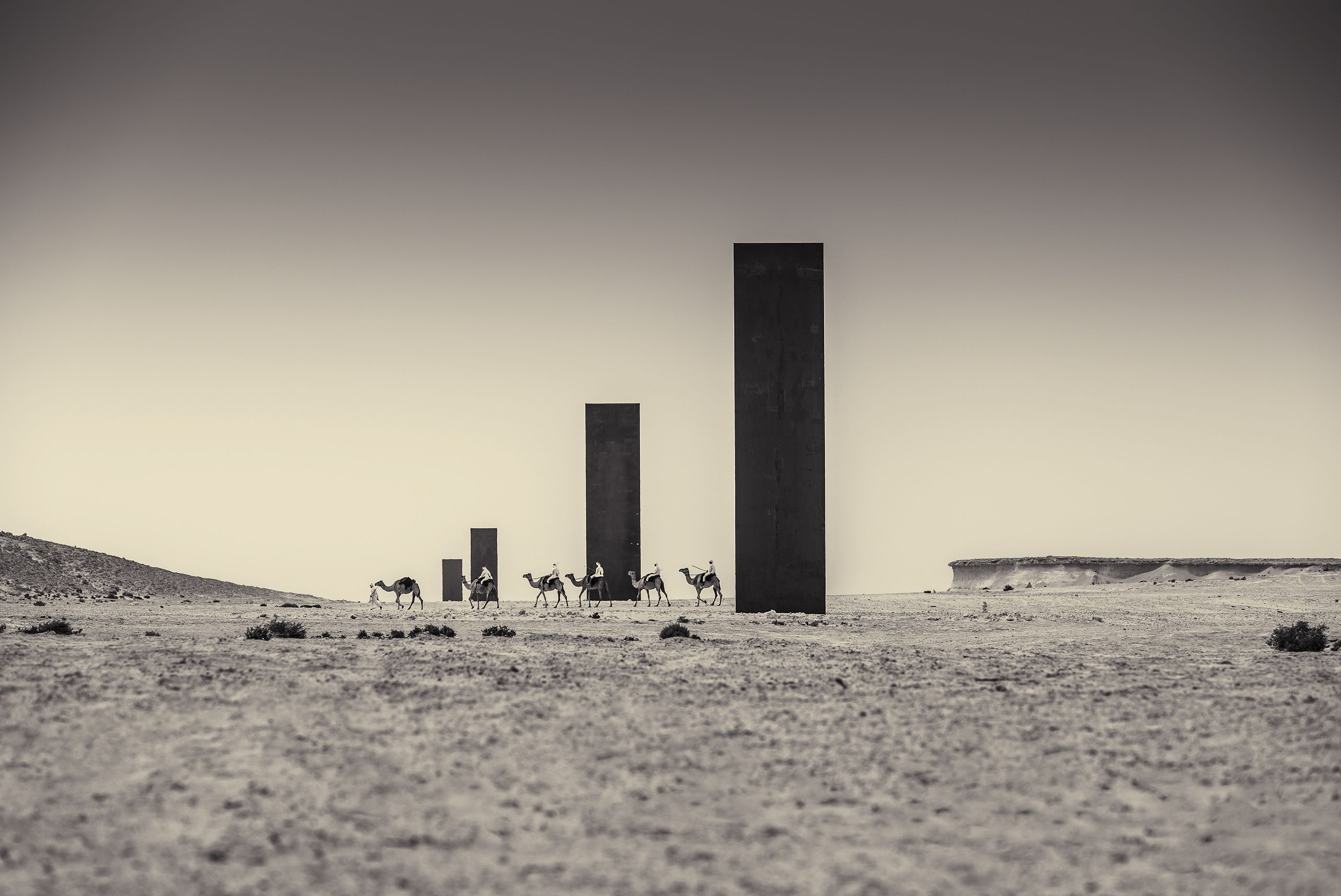 Relive the thrill of 2001: A Space Odyssey, towering iron monoliths spanning across just over a kilometre in Zekreet, East-West/West-East by Richard Serra. This impressive installation, almost ten years old, is designed to withstand the harsh desert environment, transforming as it corrodes under the relentless, sand-laden winds. Al Zubarah, hosting Shadows Travelling on the Sea of the Day by Olafur Eliasson, shows an abstract interpretation of the seal of solomon, an ancient Islamic symbol. Its reflections are designed to disorient and play into the vastness of the landscape. SlugTurtle TemplEarth by Ernesto Neto nearby invites interaction, calling visitors to sit, sing, and dance around the structure, celebrating humanity.