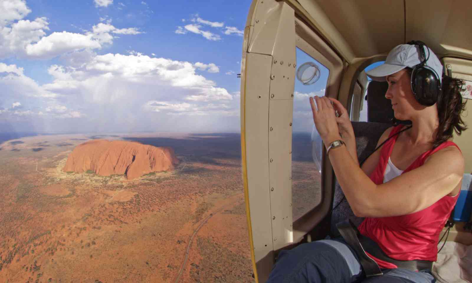 The scale of Uluru and neighboring colossal rock formation Kata Tjuta become very real when you view them from a helicopter…