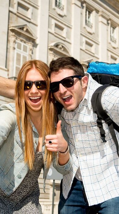 Main image: Backpackers using a selfie stick (Shutterstock)