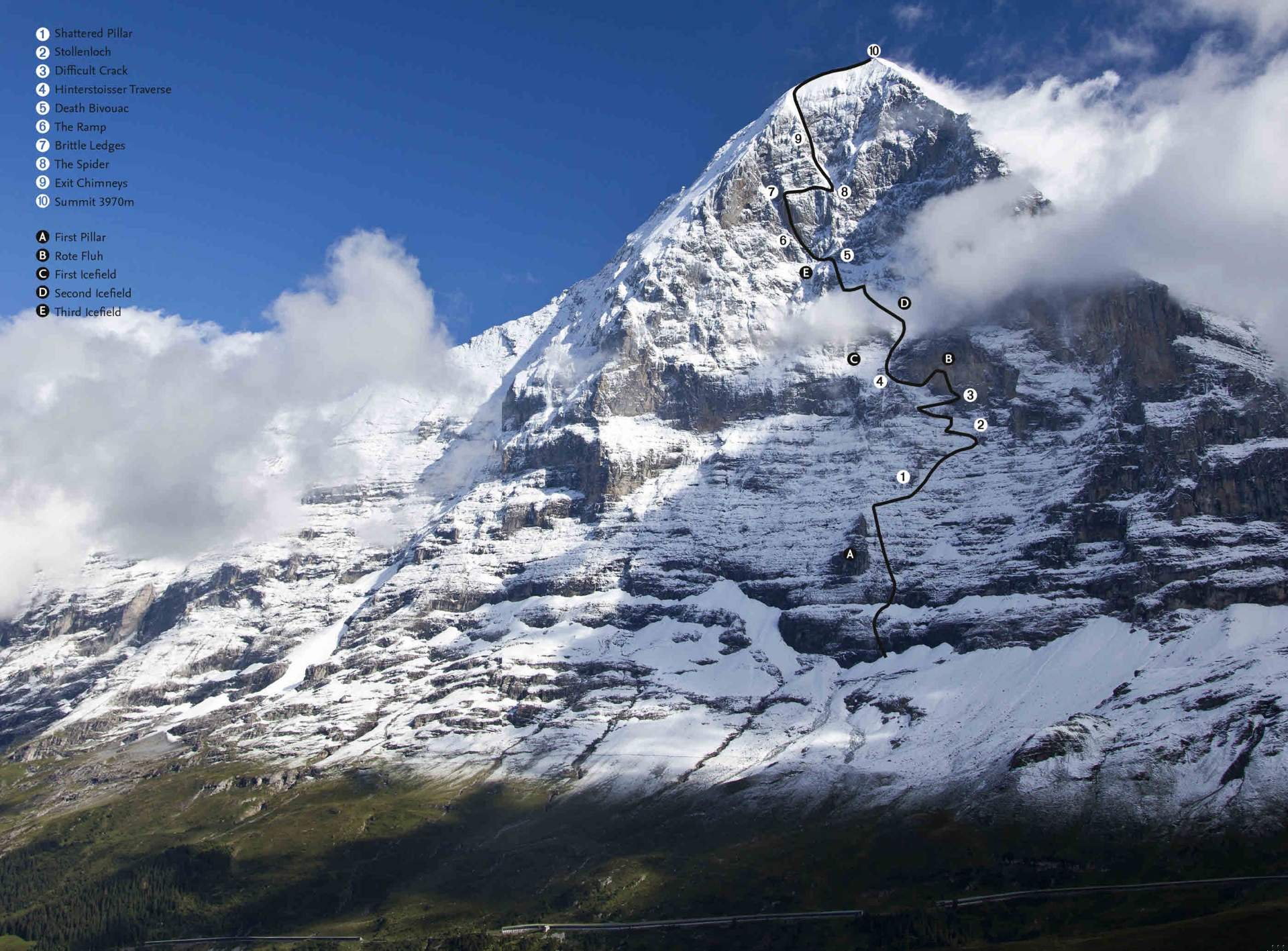 The expedition: Shattered Pillar; Difficult Crack; Brittle Ledges; The White Spider; Death Bivouac — even to non-mountaineers, these names conjure up an aura of dread and danger. But to those who know the Eiger they generate an exceptional, almost primitive, feeling of fear and respect. The Eiger’s north wall is the largest in the Alps and the most notorious mountain face in the world. By 1938 it still hadn’t been ascended via this route until Austrian and German climbers Heinrich Harrer, Fritz Kasparek, Anderl Heckmair and Ludwig Vörg claimed their place in history.