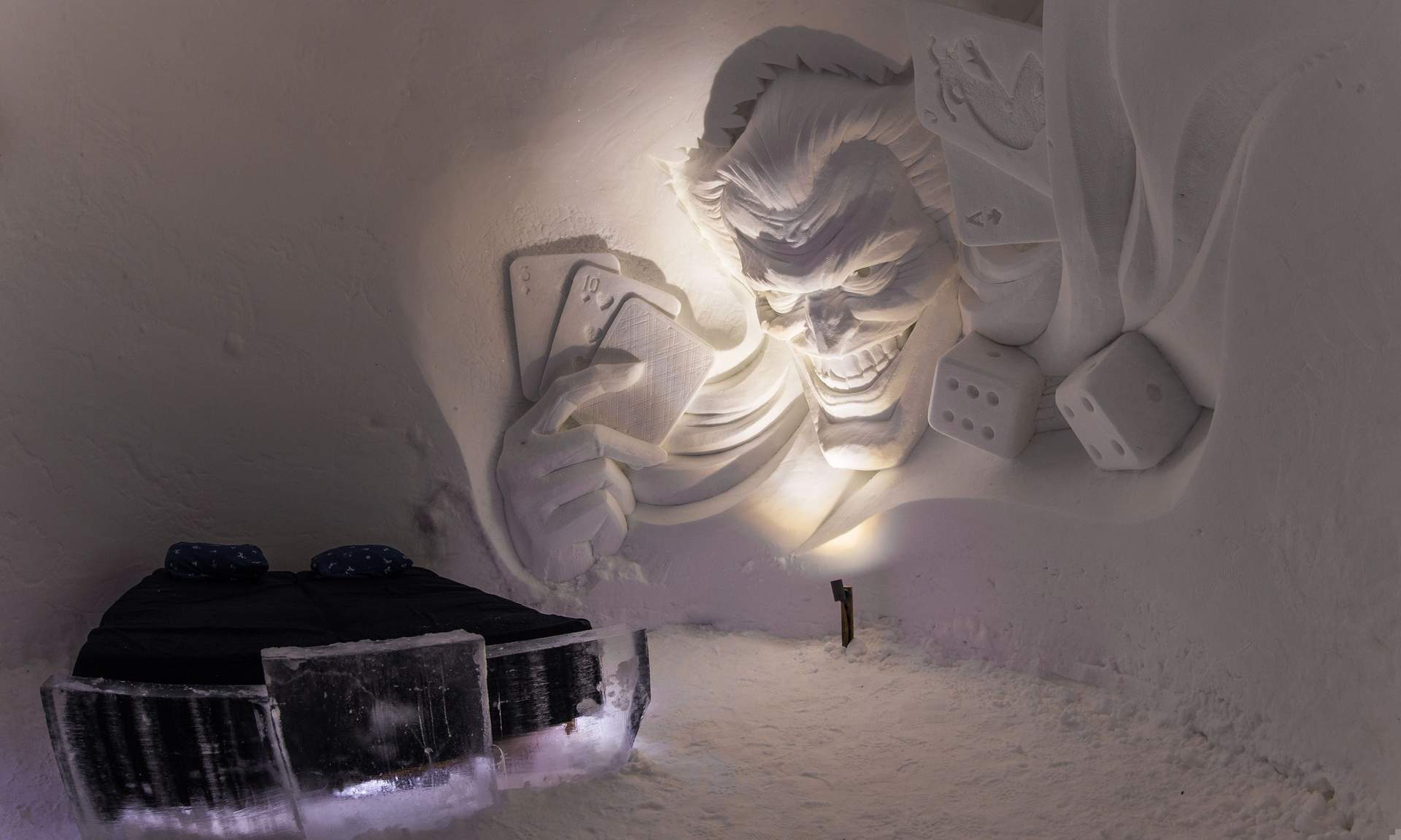 Around 20 million kilos of snow and 350,000 kilos of ice are re-designed every year to create the ever-changing Snow Village in Finland. In previous years, the snow suites, chapel, ice restaurant and bar have been decorated with a Game of Thrones-inspired characters and sculptures.