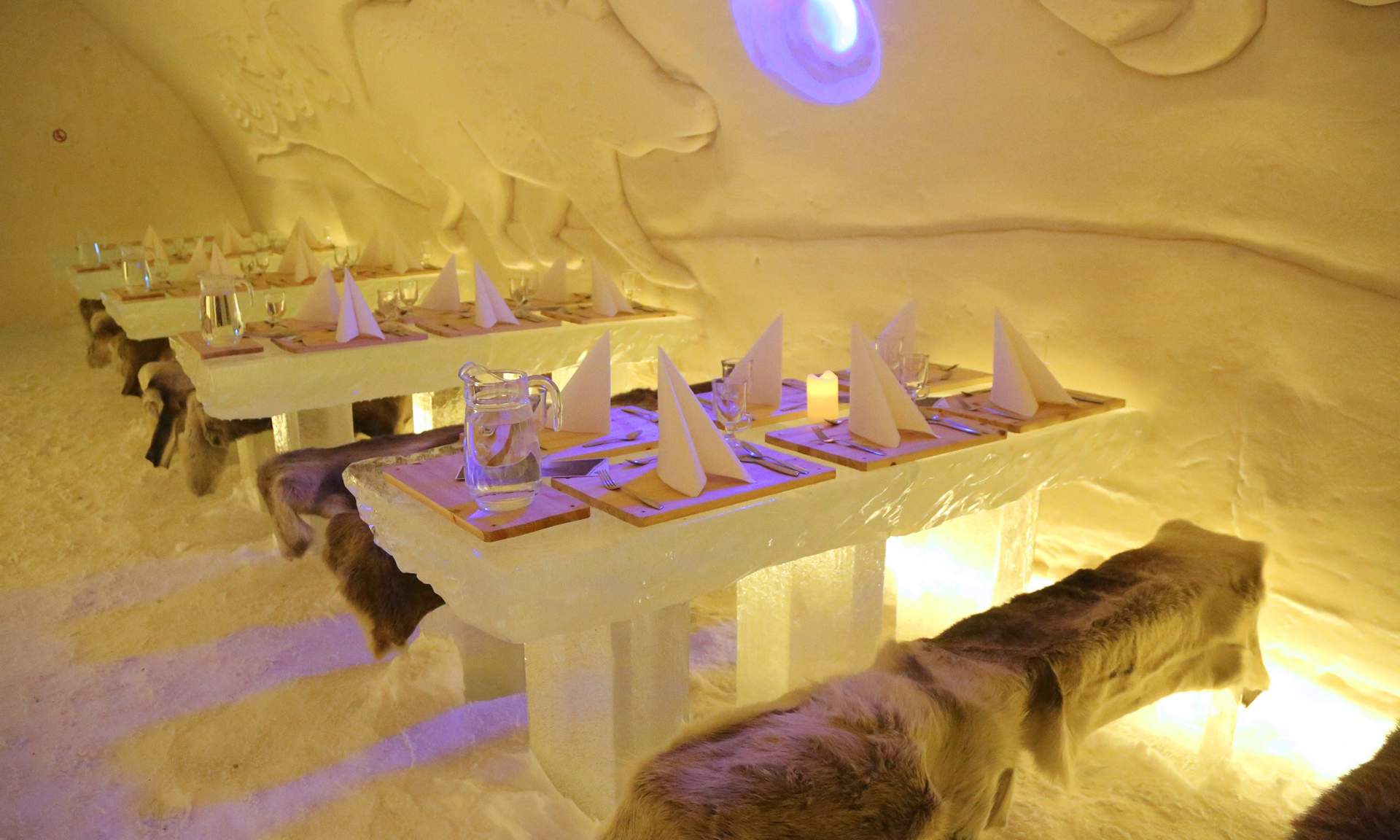 The candlelit restaurant inside the Arctic SnowHotel (Shutterstock)