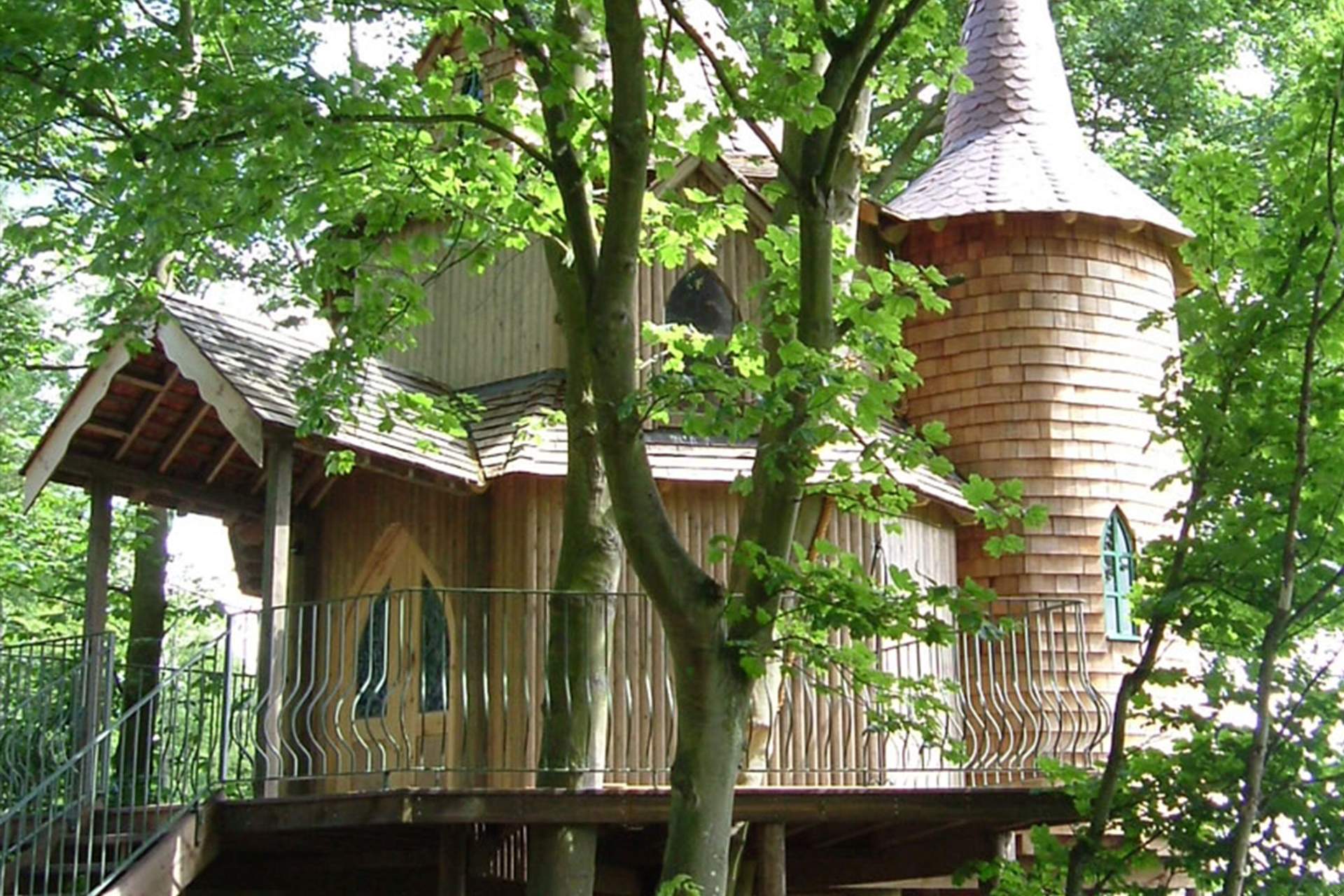 Built in a cluster of sycamore trees, a stay at Fernie Castle’s treehouse is like stepping into a fairytale. That’s not just because of its turreted roof and its high position among the foliage, but also because of the décor – fairies and mythical creatures are painted on the walls.