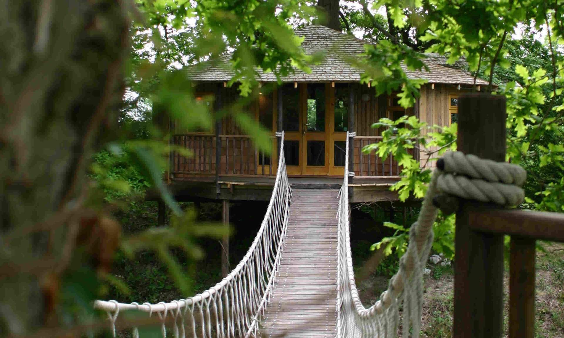 A walk across a 24m rope bridge suspended above a pond takes you to Bensfield Treehouse. Tucked away in the Sussex countryside, this stunning treetop B&B, that sleeps a maximum of two people, is built around a mature oak and is the ultimate hideaway for those wanting to get back to nature. It comes complete with a fitted kitchen and en-suite shower room.