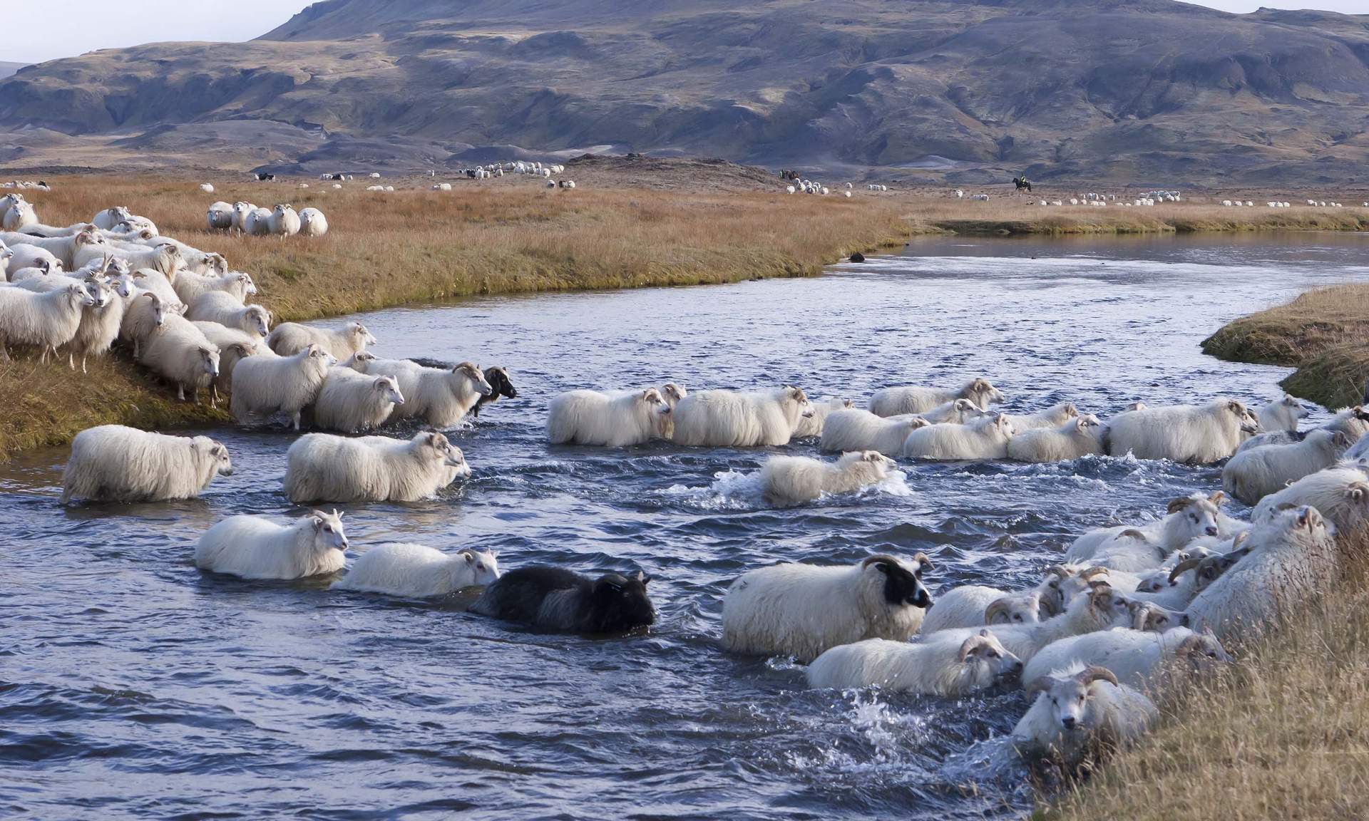 Réttir is an Icelandic farming tradition, where huge crowds of sheep and horses that have spent the summer roaming free in the highlands are collected together by a long line of horsemen that stretches for miles, and driven back down to the lowlands for winter. While gathering sheep and other animals is serious business for the farmers, it’s a day of fun for other Icelanders and visitors alike.