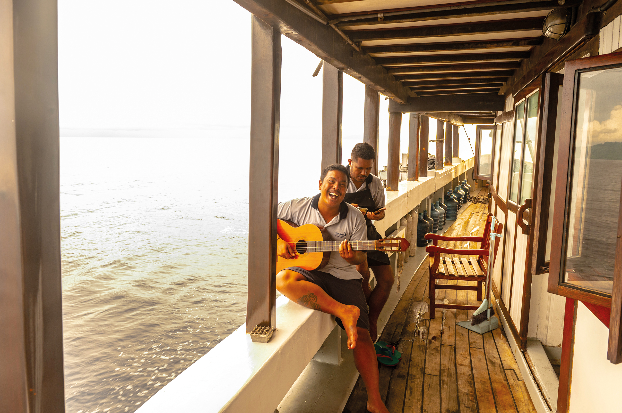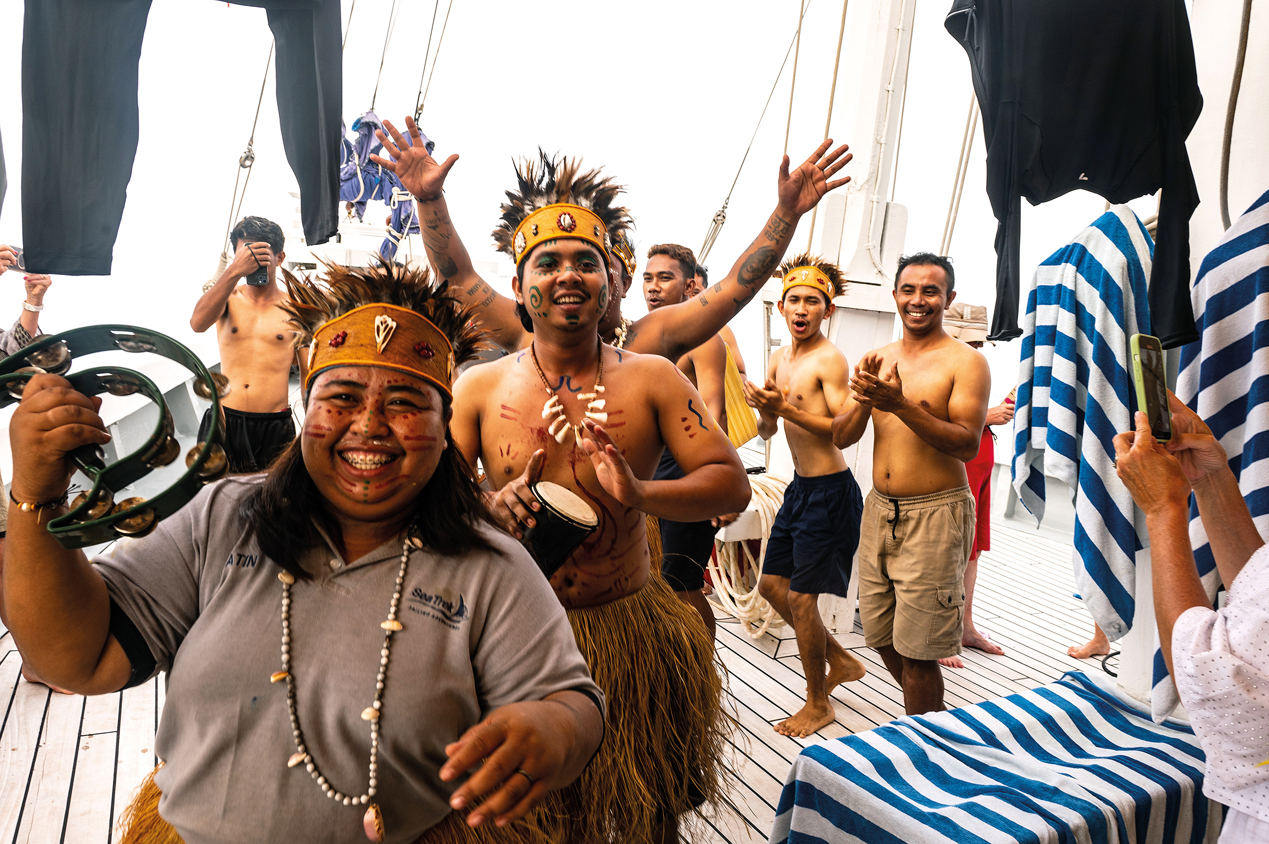 The Indonesian crew of the Ombak Putih entertain themselves between duties (Mark Stratton)
