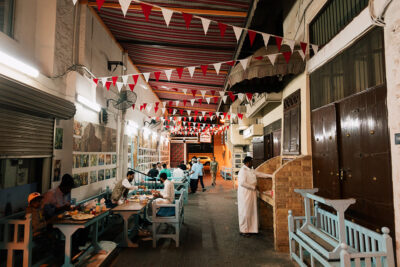 Next, I followed my nostrils towards the aromas of turmeric and sandalwood in Manama’s Little India. To a background of Bollywood songs I found myself immersed in gold merchants’ shops, sari boutiques and fairy-lit stalls setting everything from samosas to powder for henna tattoos. I popped in to the Shri Krishna temple and paid my respects to marigold-garlanded statues to Hindu gods.