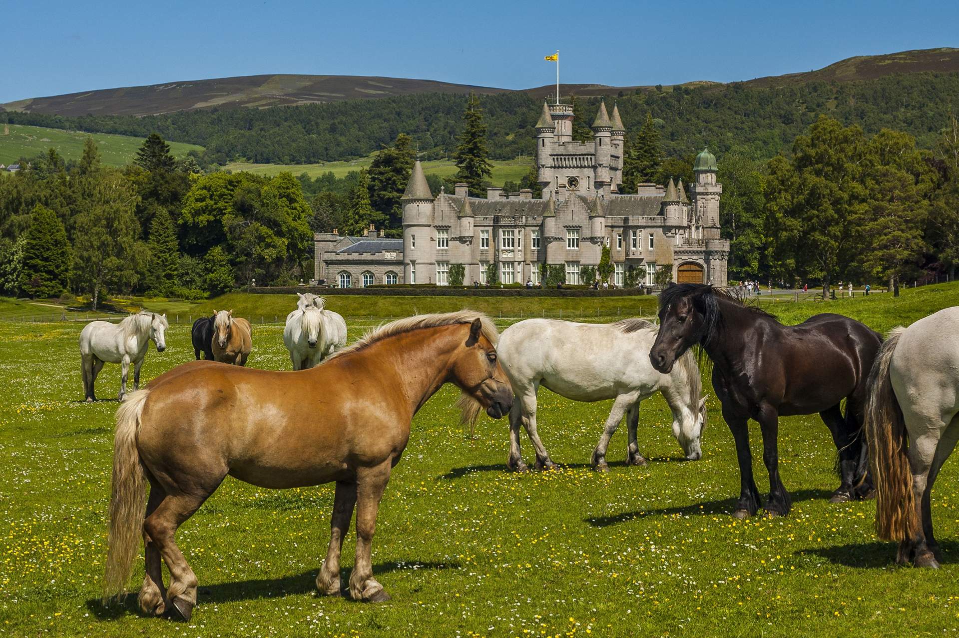 Horses graze in front of Balmoral Castle (Shutterstock)