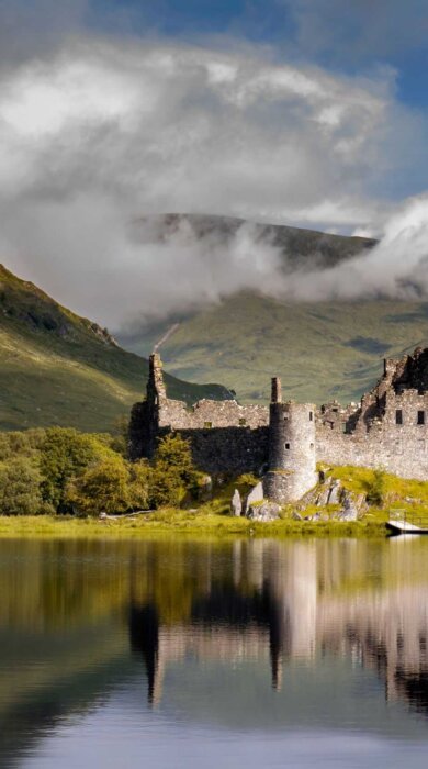 Another one of Scotland’s most photographed castles, Kilchurn Castle looks out across Loch Awe, with the imposing Ben Cruachan providing a dramatic backdrop. Built on a small, rocky isthmus, it was built by the powerful Campbell clan who controlled much of this region in medieval times. Head up to the tower house’s battlements for the most expansive views.