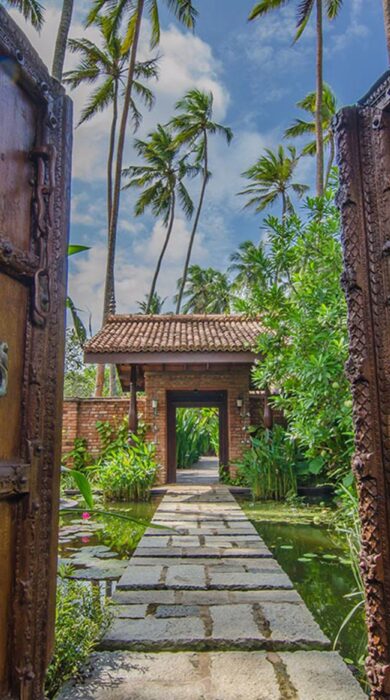 A tropical hideaway just 30km south of Colombo, Reef Villa and Spa is filled with reminders of the past, whether it’s the original mismatched floor tiles, the restored wood and brass ceiling fans, or the hand-carved wooden fretwork throughout the building.