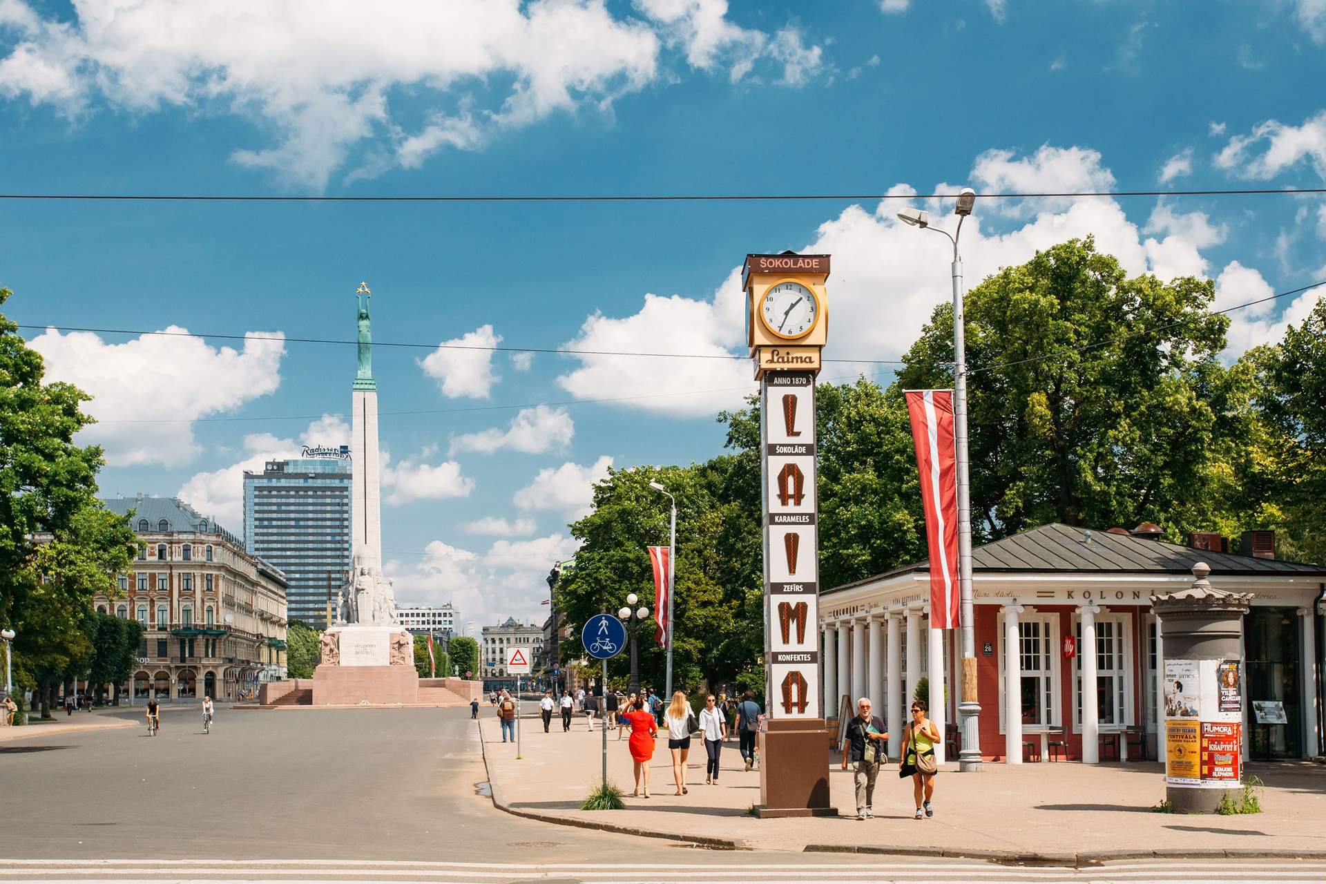 Laima is Latvia’s native chocolate company, and its iconic clock has been standing near Riga’s Freedom Monument since around 1924.