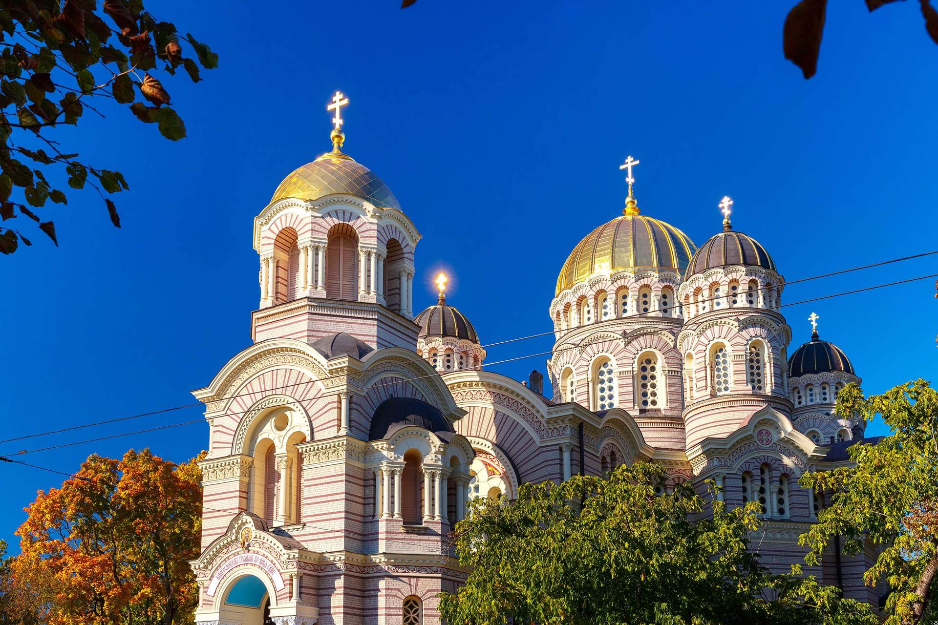 A sky view of the Nativity Cathedral in Riga, Latvia