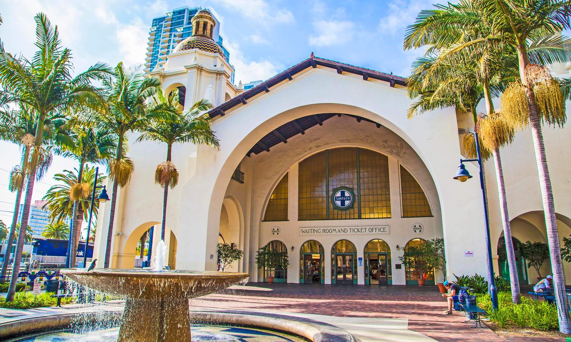 This is an ideal starting point for a walking tour of downtown and the waterfront boardwalk from the Maritime Museum to Seaport Village. A trolley outside the station will take you to San Ysidro and across the border to Tijuana in Mexico.