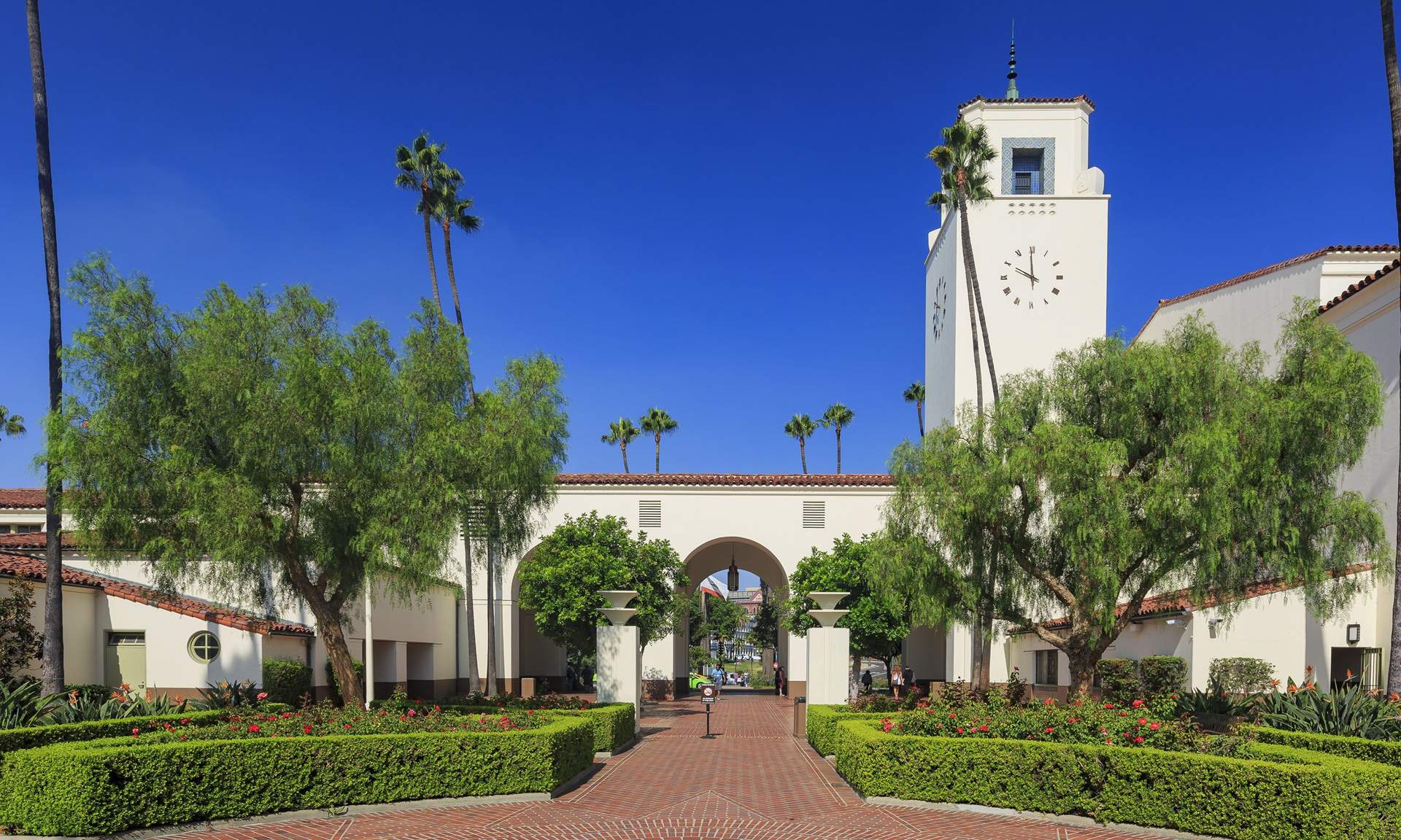 San Diego’s spacious, twin-domed Union Station, also known as the Santa Fe Depot, was built in Spanish Mission and Colonial Revival styles for passengers arriving at the Panama–California Exposition of 1915.