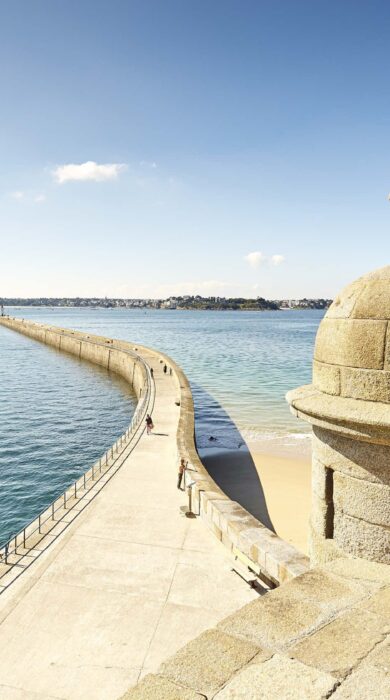 Even from the ferry, as it comes into port, Saint-Malo’s mighty remparts make for a striking sight, but nothing beats the experience of walking the centuries-old walls that encircle the old Corsair city. The two-kilometre loop takes you past eight gates, three posterns and three bastions and offers breathtaking views of the Emerald coast and the islands of Bé just off the coast. Within the walls, gaze down upon the stately granite façades of wealthy ship-owners’ mansions, where narrow cobbled streets weave between traditional creperies, kooky boutiques and welcoming bars.