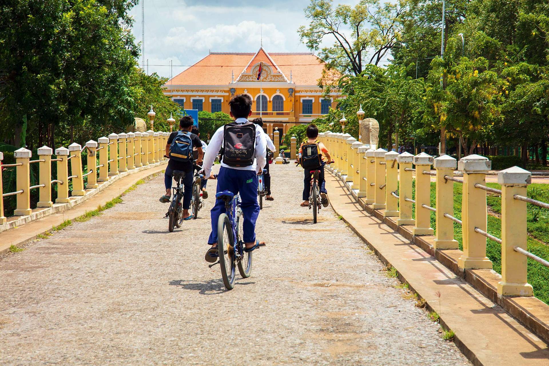 Children on their way to school in front of the Thai governor’s palace (Alex Robinson)