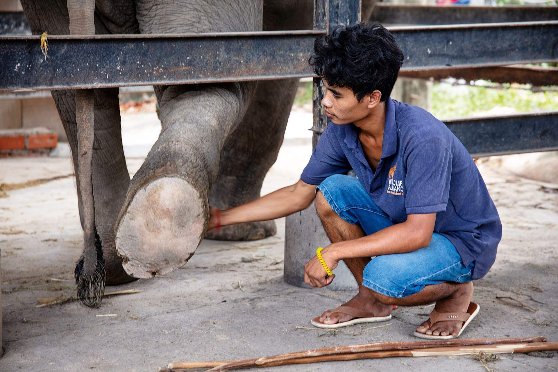 Changing a bull elephant’s prosthetic foot (Alex Robinson)