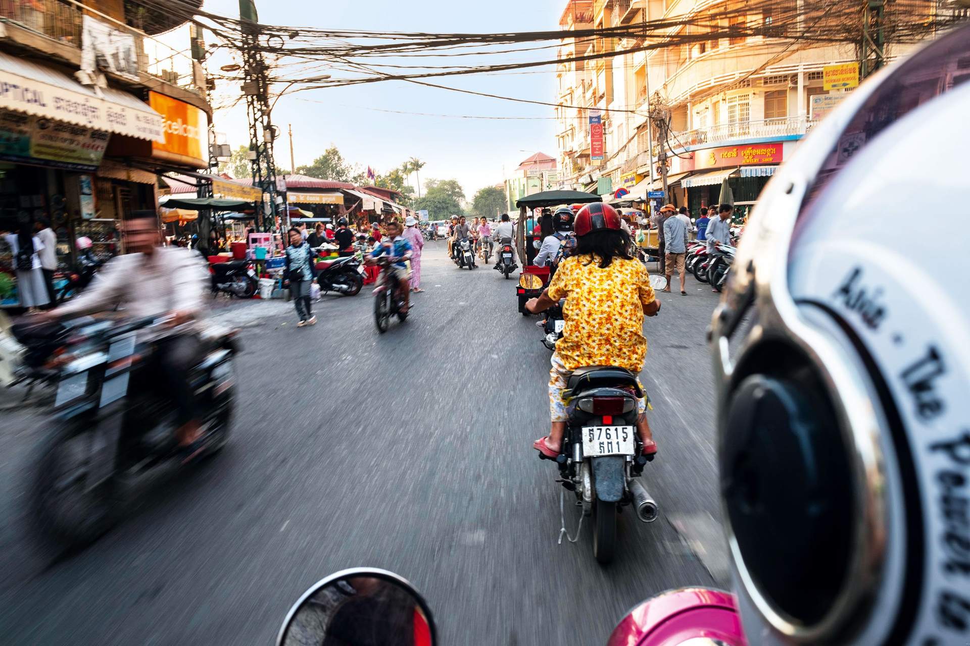 Whizzing through Phnom Penh’s busy back streets (Alex Robinson)