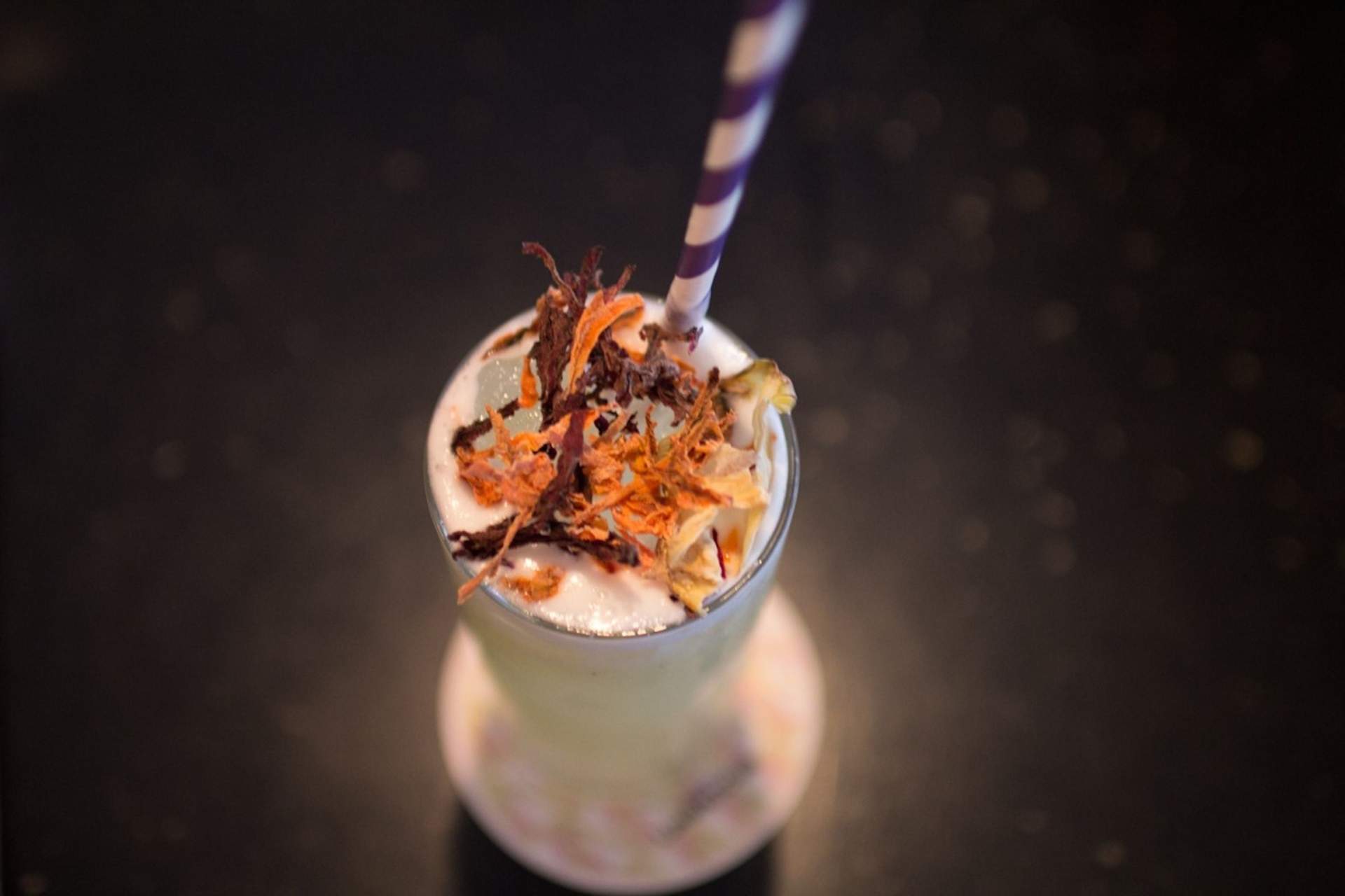 3 dashes of hibiscus syrup (made with hibiscus leaves, water, sugar, cardamom, cloves)