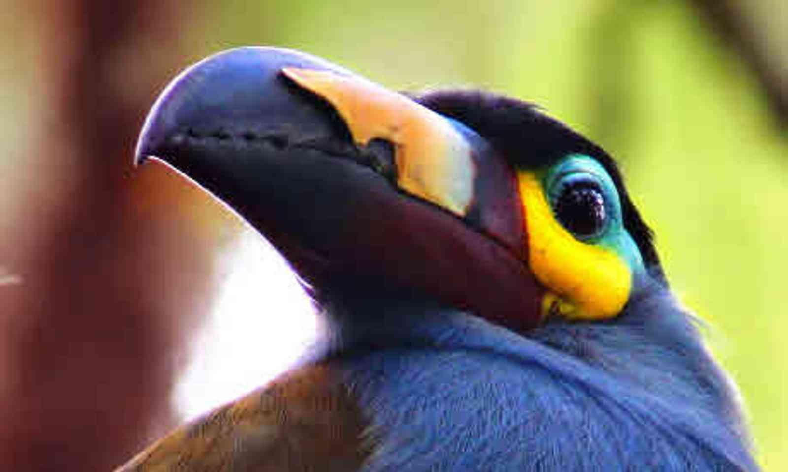 This species inhabits the rainforest in the Andes Mountain Range, usually at between 1,200 and 3,200 metres. It has an average length of 51cm and its vibrantly-coloured beak ranges from between 8.9 to 10.2cm in length.