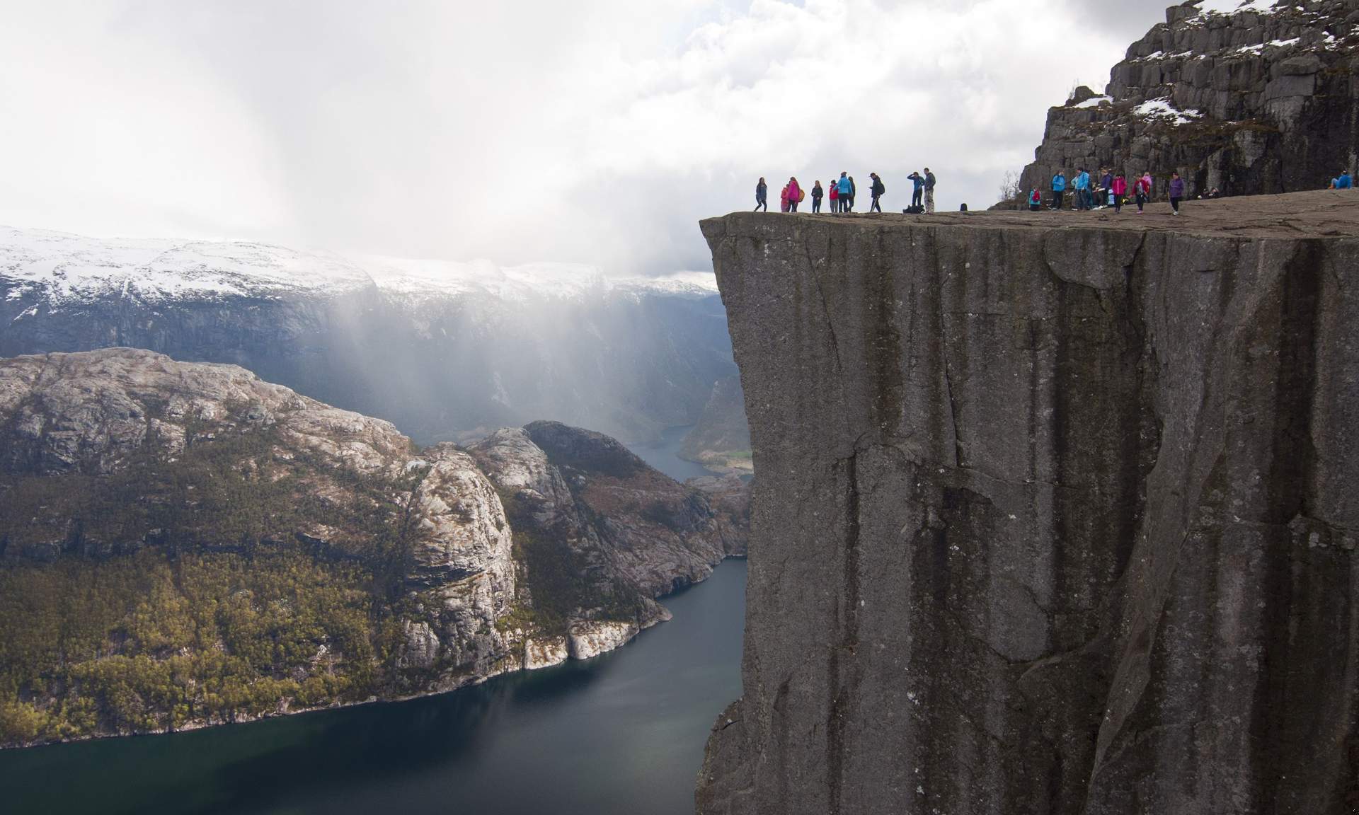 Pulpit Rock, the slab of ancient stone jutting out high above the Norwegian fjords, is one of the most spectacular sights in Norway and one where every visitor wants their photo taken. It is one of the most popular hikes in Norway, although locals sniff that it is also one of the easiest.