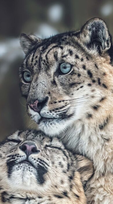 Unusually for large cats, snow leopards have blue, green or grey eyes, opposed to yellow or orange. Experts think that this may be to help them blend into their environment.