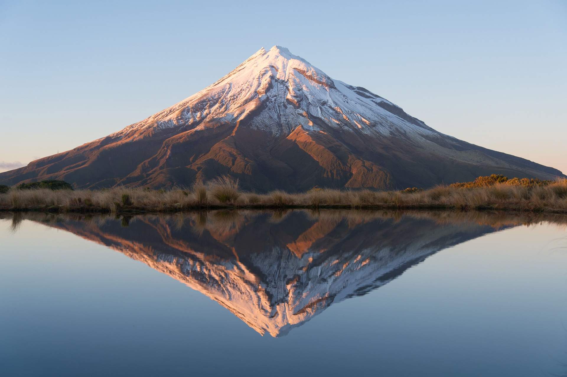 A snow topped symmetrical cone rising above green pastureland, Taranaki closely resembles Mount Fuji when viewed from the right angle. It can be seen from across the island. The region is also home to another three volcanoes in Tongario National Park and the densely forested valley containing the Whanganui River.