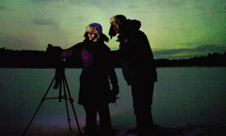 Before long, we swerved into a roadside clearing. An icy blast burst into the car as we piled out, juggling wire, tripods and woolly hats. Suspended in the air, and perfectly framed by the spindly silhouettes of birch trees, were the northern lights.