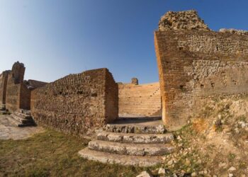 Continuing towards Mesolóngi, about 4km beforehand, ancient Pleuron (Plévro), just by the main road, is another Hellenistic city whose excavation has resumed recently. The most obvious remains are the massive perimeter wall of polygonal masonry, a small theatre whose stage is built against one of the fortification towers, and an ingenious reservoir; equally impressive are sweeping views over the local salt pans (which supply all Greece) and Mesolóngi’s lagoon.