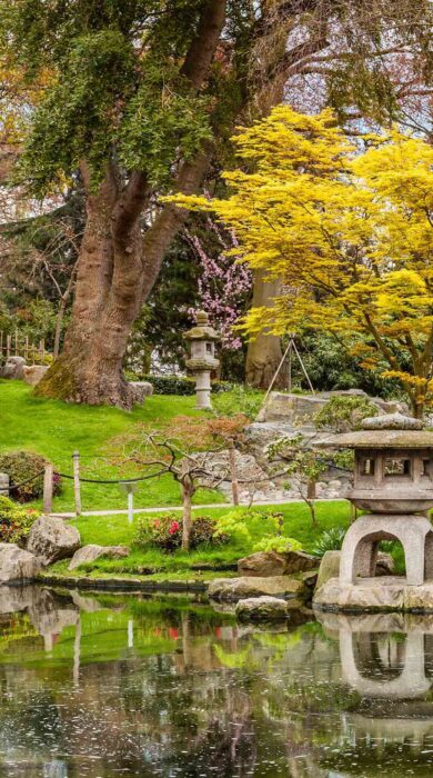 If you can put your postcode envy aside, stroll further into the park and discover the traditional Japanese garden where waterfalls and ponds hum quietly and brightly coloured peacocks roam proudly.