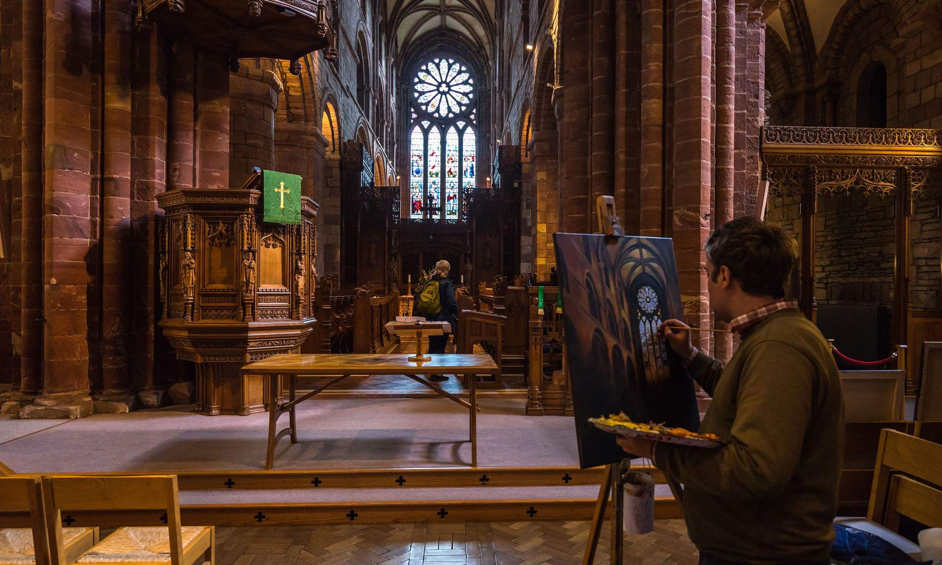 Artist painting inside St Magnus Cathedral (Shutterstock)