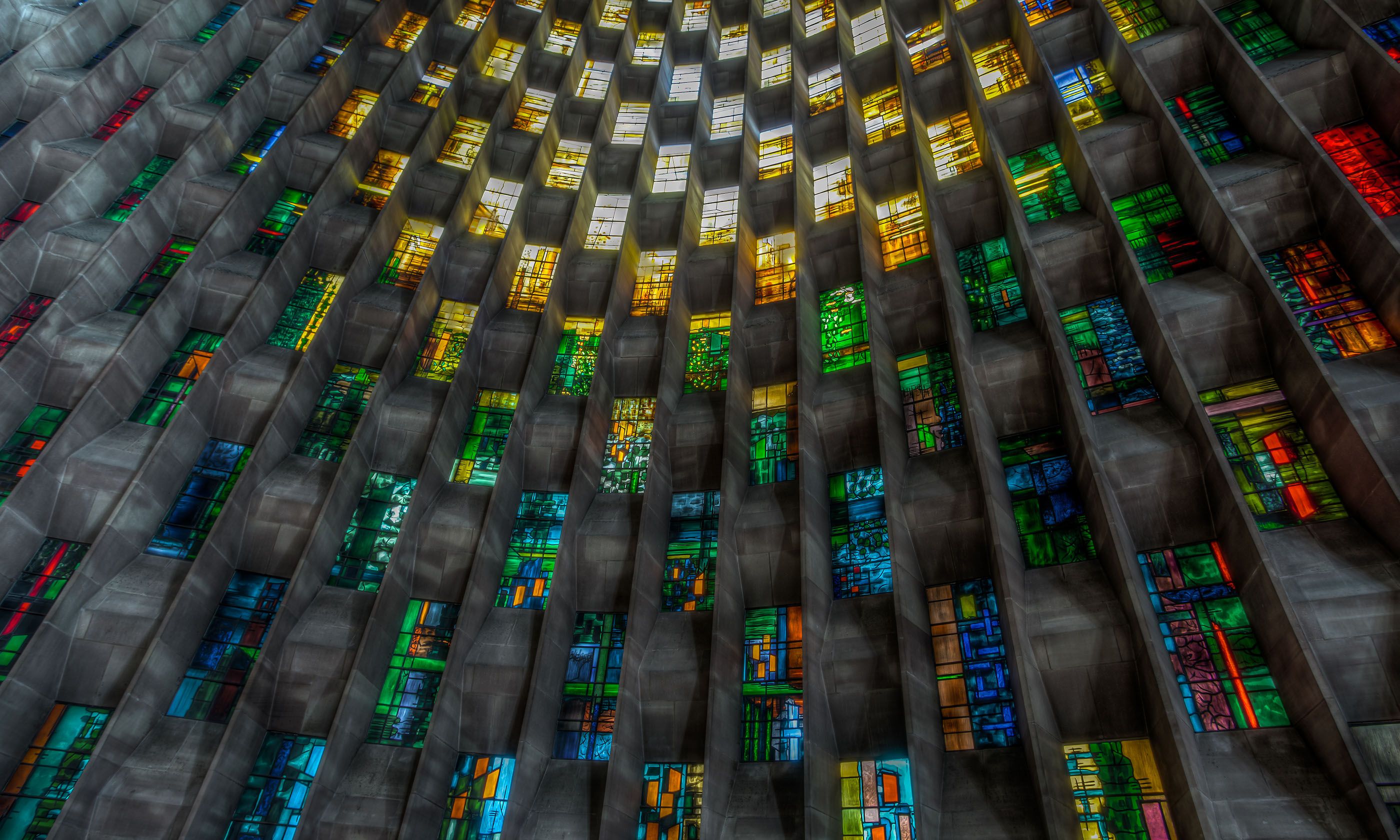 - If you walk towards the altar of the modern cathedral without looking back, you’ll get a big reveal when you turn round – the whole cathedral suddenly blazes with colour from hitherto unseen windows.
