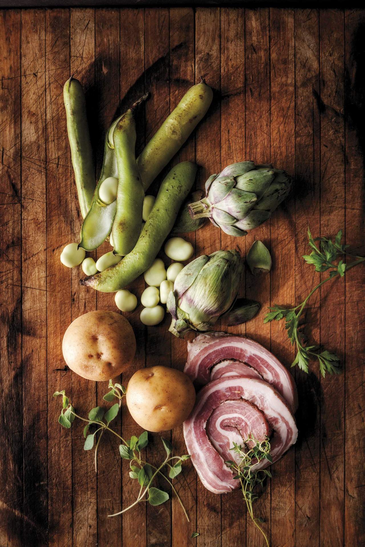 Fava beans, artichokes and potatoes, serves 4 to 6