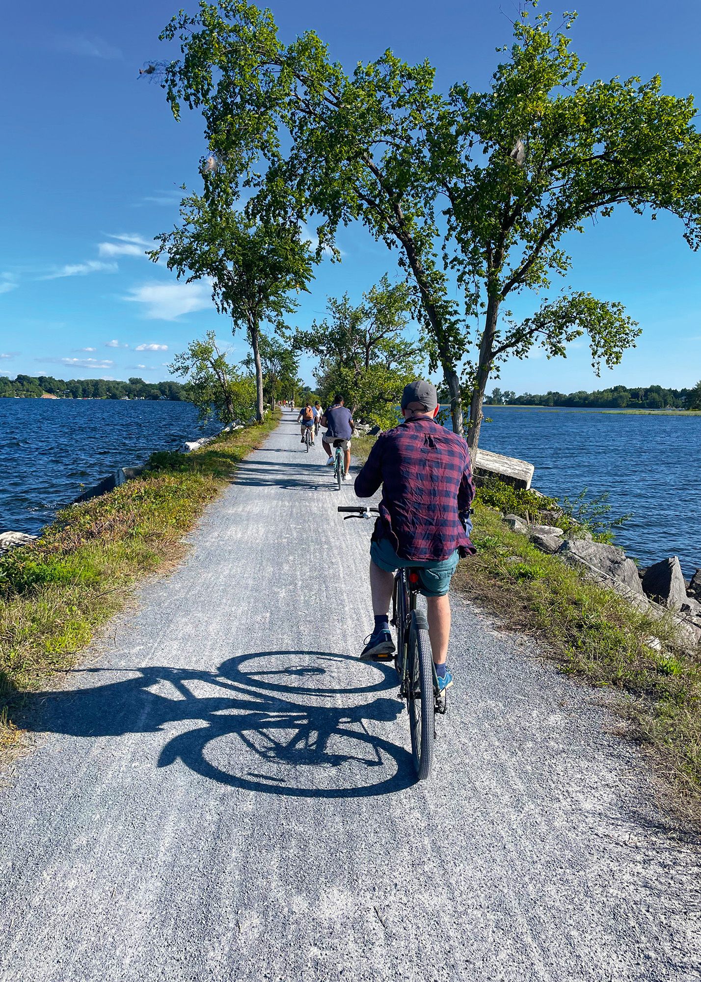 An undoubted highlight of the trip was cycling the 21.6km-long (one way) Island Line Trail from Burlington, which begins near the marina. It’s easy enough to rent bicycles for the day, and we hired a mix of manual and electric bikes from friendly company Local Motion.