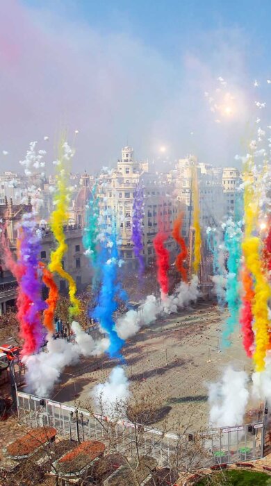 This year’s traditional activities include mascleates (fireworks), late night parties, and art installations, where around 800 monuments fill the streets with bright colour, satire and joy.