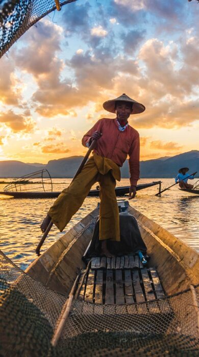 At Inle Sanctuary Phayartaung you’ll stay in stilt houses built on the pier. The eco-lodge is the first hotel on Sakar Lake on the southern end of Inle Lake and offers breathtaking views.
