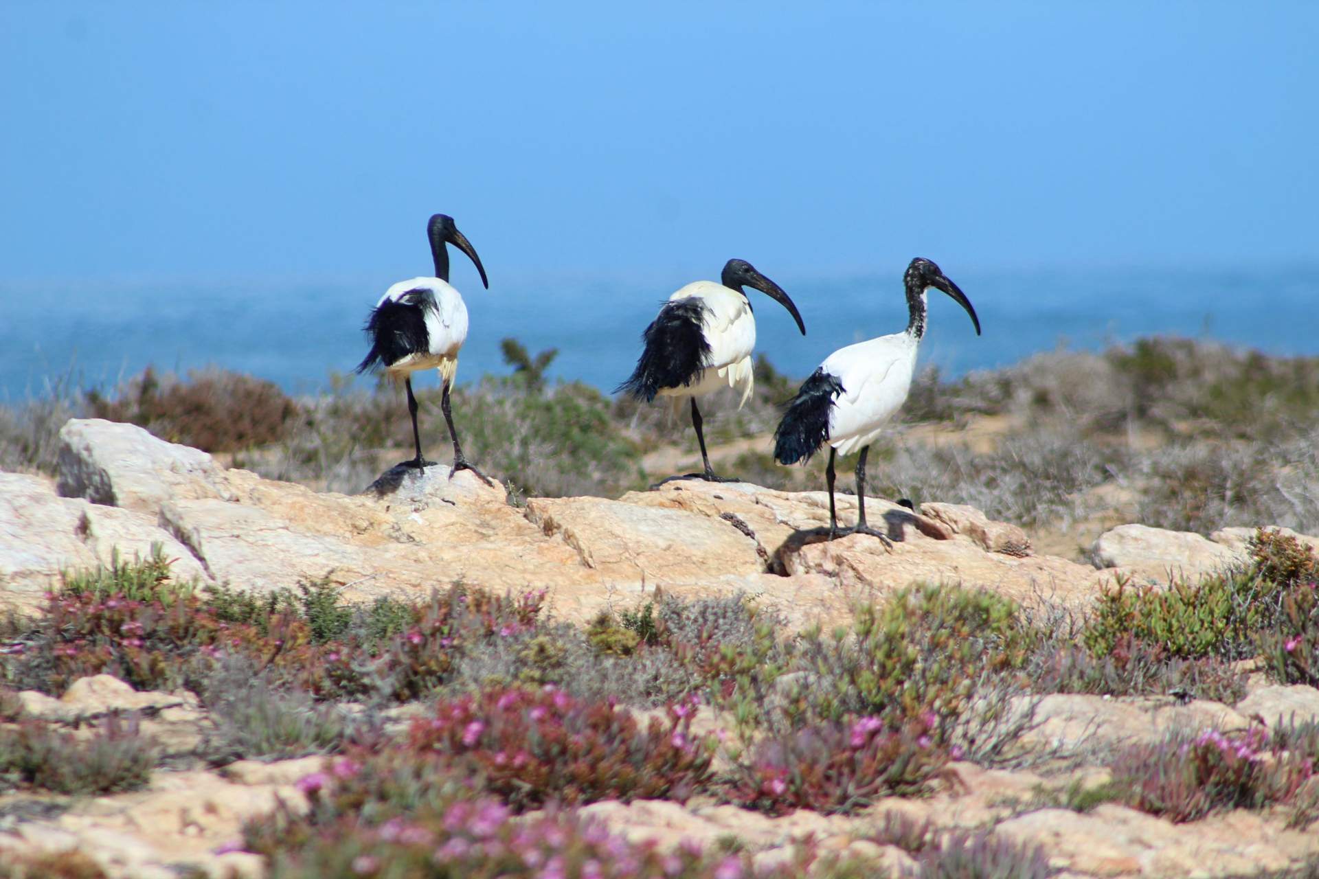 A congregation of African sacred ibis by the Diamond Coast (Nora Wallaya)