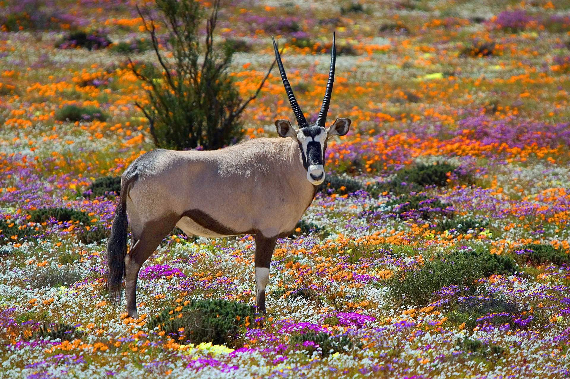An oryx amongst the wildflowers in Namaqualand (Dreamstime)