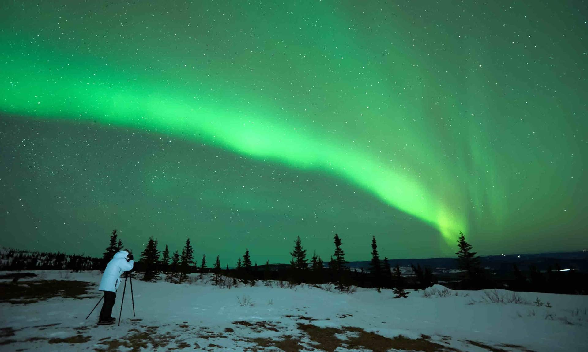 Wear lots of layers. If anything, overdress. You can always shed layers in the heat of the moment when the aurora is blazing above you. For photographers, warming up numb fingers takes time and could cost you that perfect photo. Big, thick gloves or arctic-grade mitts don’t go well with small camera buttons and dials.