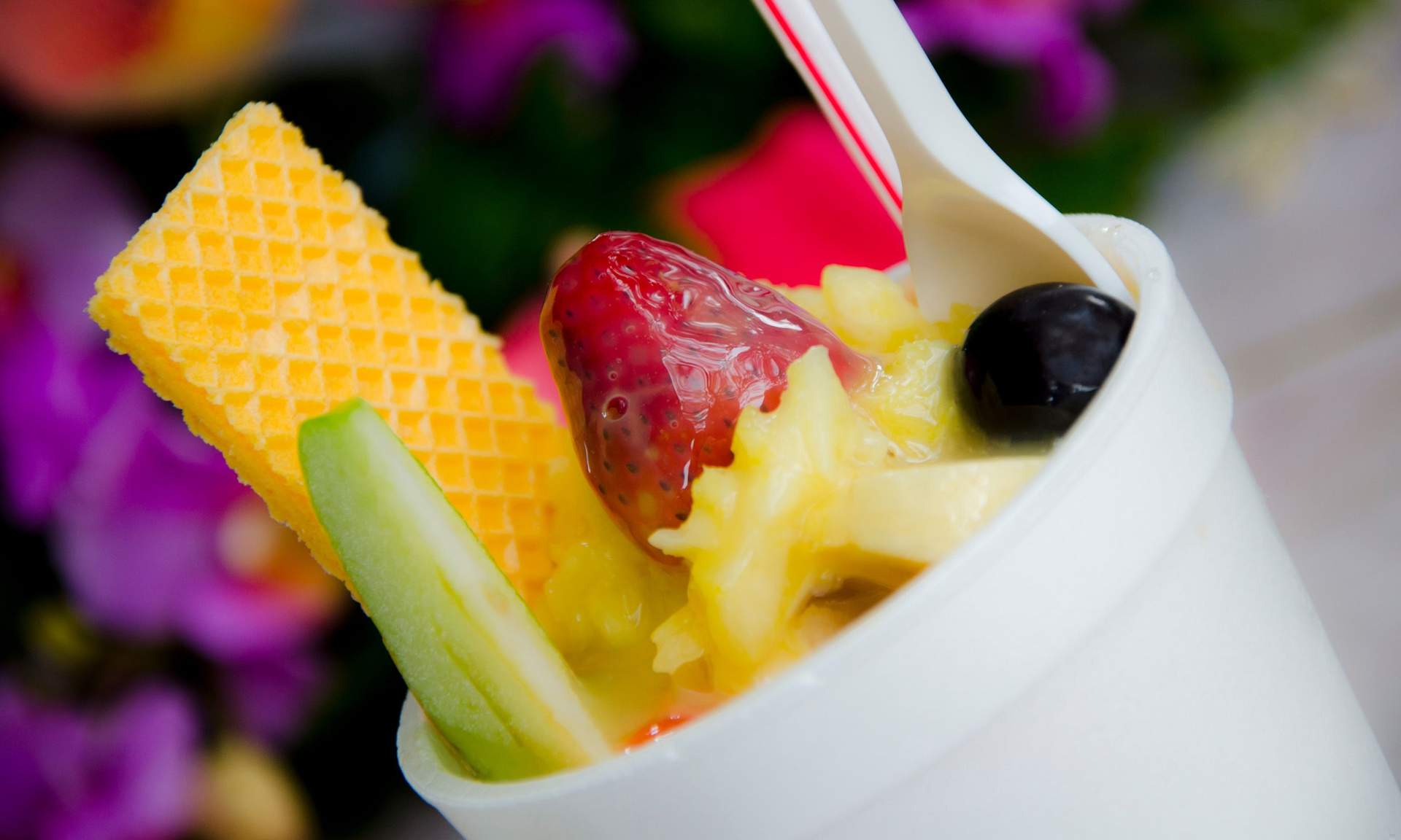 Cholado, for example, is a cup of mixed fruit doused with a hearty slurp of condensed milk. Champus is a kind of corn soup, mixed with fresh fruit. Pandebono, a popular cheesy bread snack sold in bakeries, cafes and street stalls across the city, is a rare savoury treat.