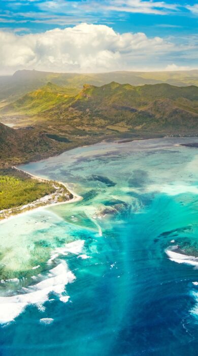 Another natural phenomenon in the south, this time to the west, is the underwater waterfall just off the coast of Le Morne. The sand and silt on the ocean floor here run off in a way that makes it look like they’re pouring down a waterfall. The illusion is even more apparent from above. Local tour operators are on hand to organise a spectacular helicopter ride, especially for that.