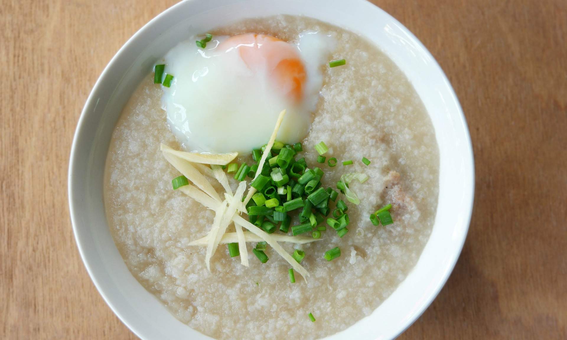 3: Serve the congee in bowls sprinkled with a little soy sauce and the scallions, topping each bowl with an egg, if desired.