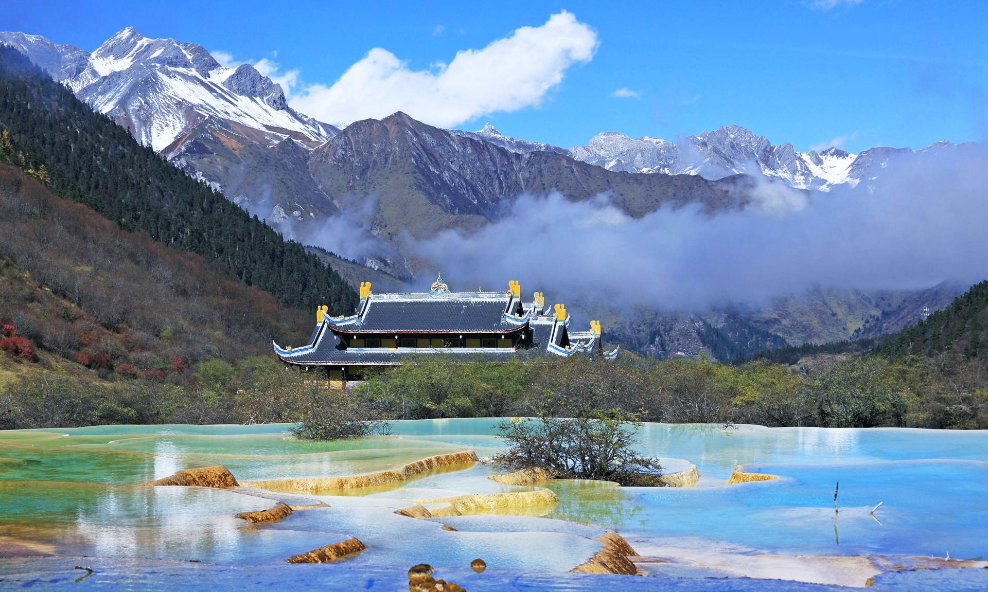 The steamy and luminous-looking limestone terraced pools of Huanglong cascade nearly 4km through a landscape of snowy peaks and forests, home to golden snub-nosed monkeys and giant pandas. You can’t enter the water, but you can admire the pools from a boardwalk.